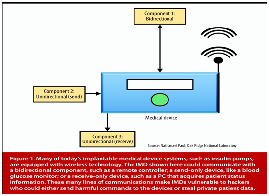 Mostly, these devices have no direct connectivity with the internet but may have connectivity with a bedside monitor who in turn may be connected to internet thus enabling hackers to deploy malware to exploit communication channel between the device and external control units. Adding encryption capabilities to IMDs would add complexity and require more battery life and computing powers to handle algorithms (Leavit, 2010). This would be a great challenge in future to build defense against such vulnerabilities by designing zero- power- defense mechanisms for IMDs (Ransford, 2014).