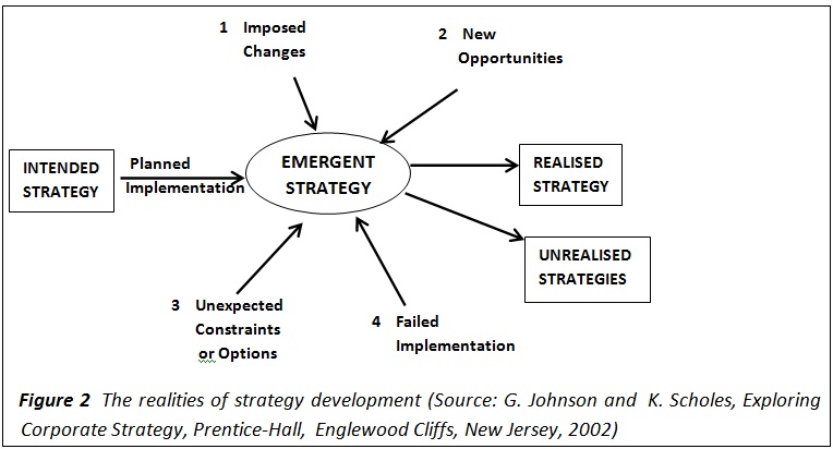 However, to achieve the desired objectives, the strategies need to be implemented through acquirement and effective allocation of sufficient resources through accountable responsibilities ( Ward & Peppard, 2002). But even if all this is done, the things will not turn out as desired ( Johnson & Scholes, 2002 ) as demonstrated in the following figure. Therefore a strategic management process that can adapt to changing scenarios during the implementation of original strategy is not a substitute for the original strategy but it’s a way of making it work.