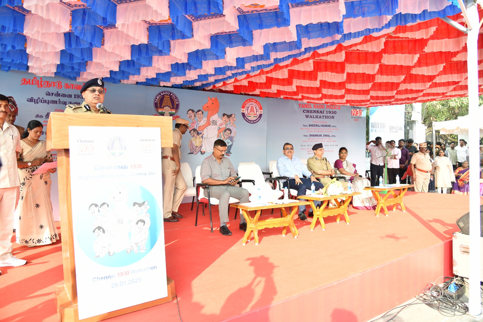 Around 5000 participants from all walks of life including students of schools, colleges, volunteers from NSS, general public, press people, etc. took part and covered the distance ranging from Chepauk Stadium/Walajah Road (Infront of State Guest House) to Adams Point on Swamy Sivananda Salai via Press Club Road that covers a distance of 1930 metres symbolically indicating the Helpline number.